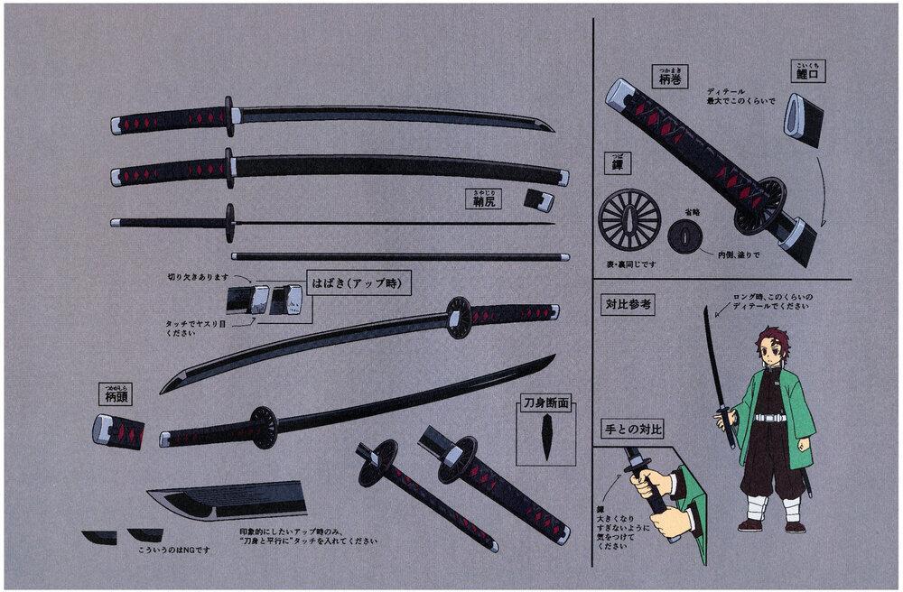 富冈义勇的日轮刀,在刀身、刀鞘、刀柄上均呈现蓝色,刀锷为正六边形。刀身上刻有“恶鬼灭杀”的文字。