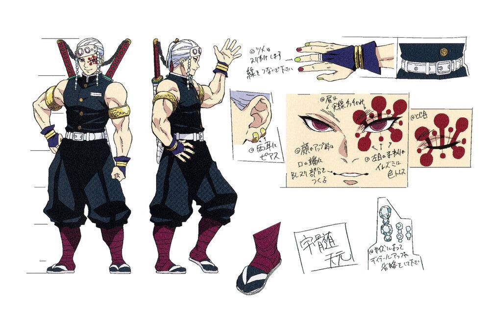 宇髄天元,鬼杀队的音柱,呼吸流派为音之呼吸。其年龄设定为23岁,是忍者出身,使用“二刀流”。外形上,头部带着头巾,眼部涂有花纹,还拥有三个妻子。后因身体受创,退出了柱,负责训练鬼杀队新人。