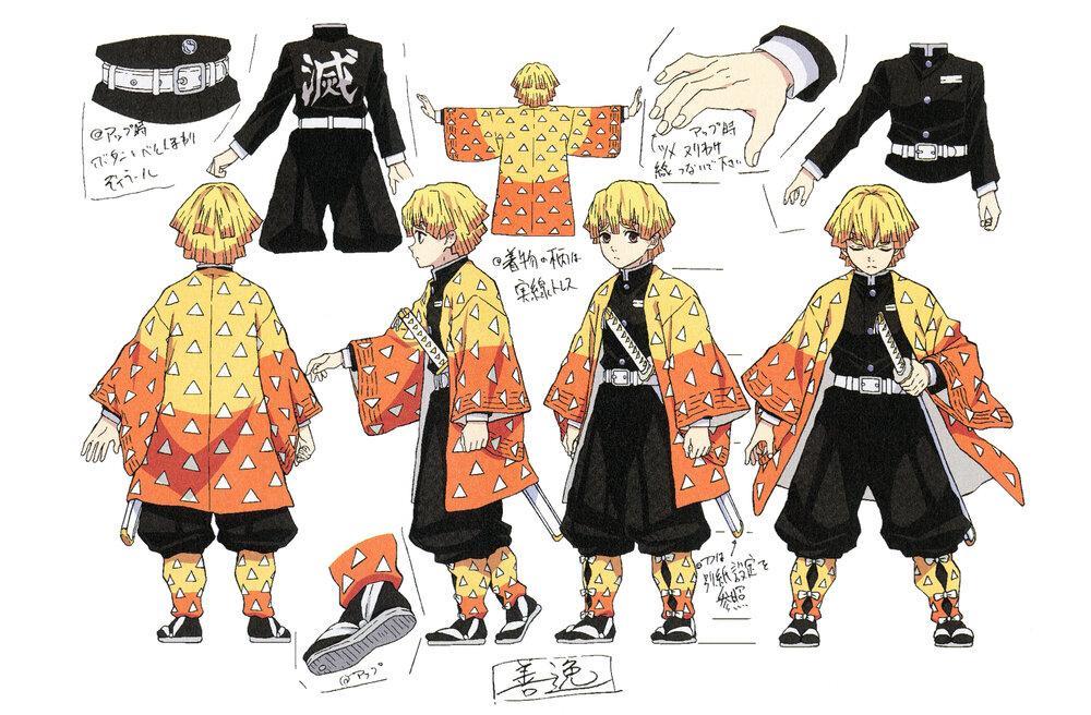 善逸是雷之呼吸的传人,有着灵敏的听觉。他的外形设计为黄色系,黄色的头发与黄色的外褂。武器方面,刀鞘、刀柄、刀颚为白色,刀刃上设计有有闪电状刃纹,这是雷之呼吸传人的特征。