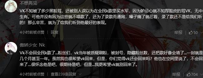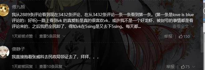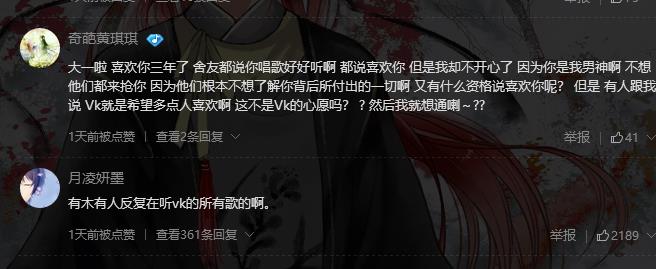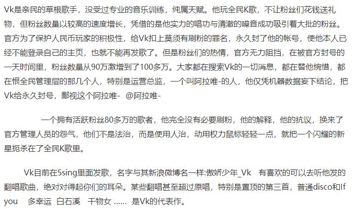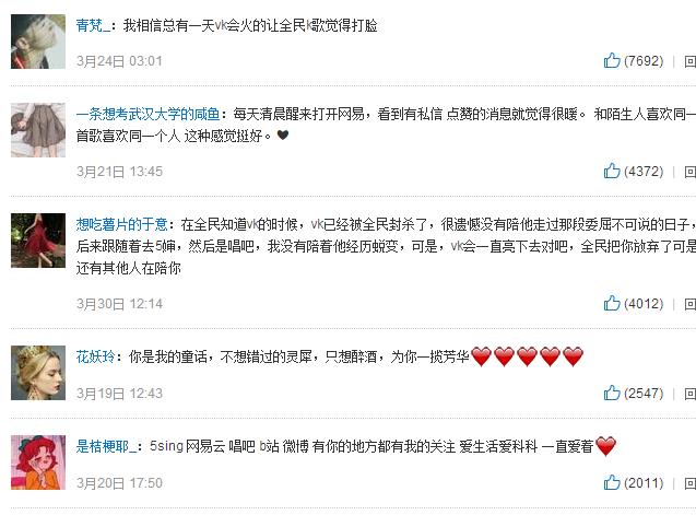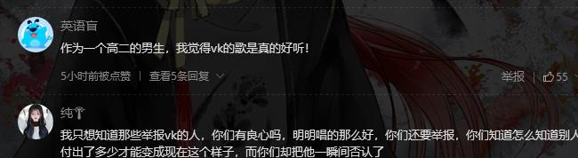 看了这些,你是不是想去了解Vk,但是你会发现他并没有什么绯闻,唯一的绯闻便是全民k歌封杀他,还有腾讯,他的好多首歌都特别好听,小编最近日常单曲循环,甚至有的歌比原唱还好听。