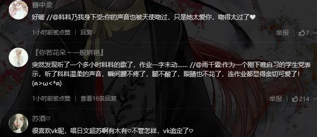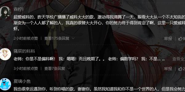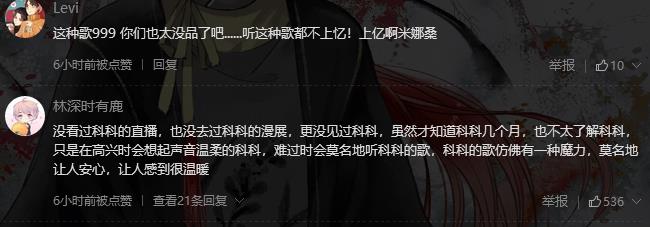小编第一次看见999+的评论区中都是好评,没有互相撕架,也没有人发些和音乐无关的评论,都是和歌曲或者歌手有关,小编没有和科科相处过,但是就凭他给粉丝树立了充满正能量的榜样,因为他喜欢“学霸型的小龙虾”,于是我的那位小妹妹,热爱学习,只是因为科科的一句话。