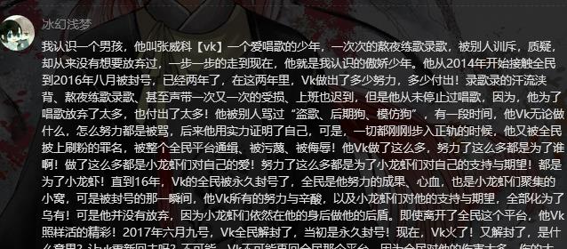 其实这个标题,小编其实有点“标题党”的嫌疑了,因为标题字数问题原因,小编想不出更好的标题了,但是标题绝对没有更多的意思,小编是99年的,可以说是90后,但是当一个初一的小女孩给我推荐一首Vk的歌时,小编就愣住了,小编也算是喜欢关注明星的一个人,为什么完全没听说过Vk