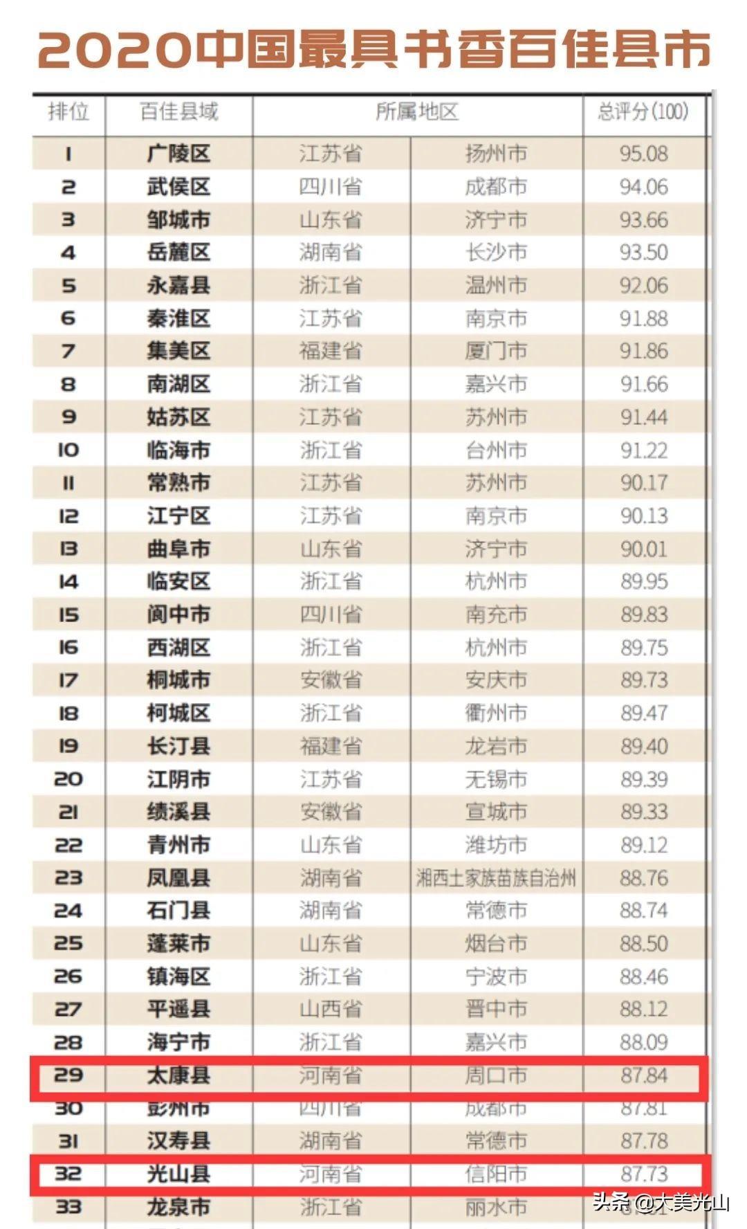 近日《小康》杂志社联合多家国家权威部门和专业机构面向中国县域基层行政单位开创“百县榜单工程”发布“2020中国最具书香百佳县市”榜单其中河南7地上榜,光山榜上有名!!!