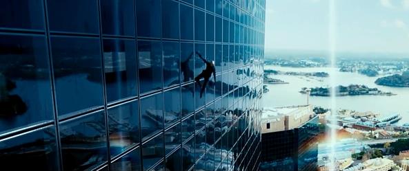 自从2011年汤姆·克鲁斯在《碟中谍4》爬过迪拜的玻璃幕墙后,中外电影里出现类似的镜头不是一次两次,只能说杰森·斯坦森攀爬的动作比较潇洒,到底CG特效省力。