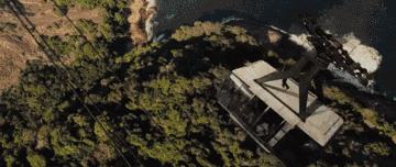 杰森·斯坦森跳了若干次,从缆车跳到滑翔伞、从悬崖跳入海中、从直升机跳入海中。