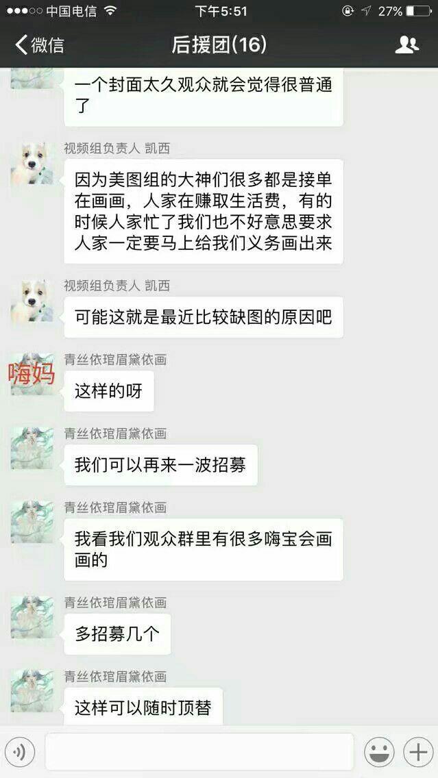 以下为嗨妈与后援团的聊天截图。