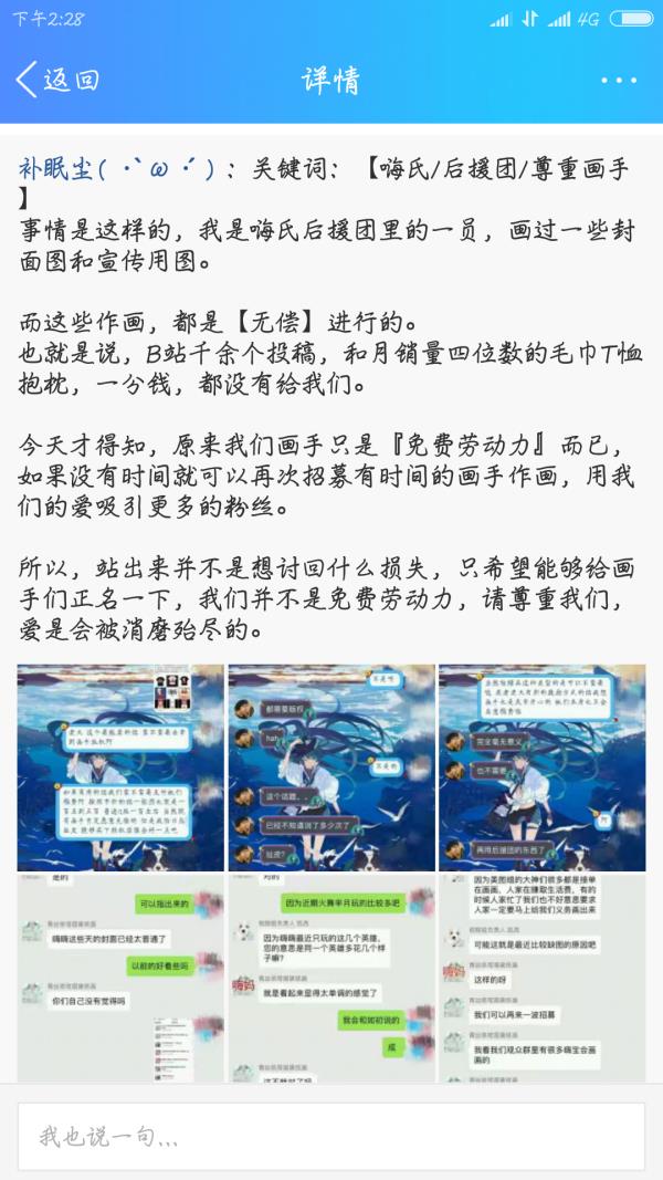 嗨氏与画手的聊天截图