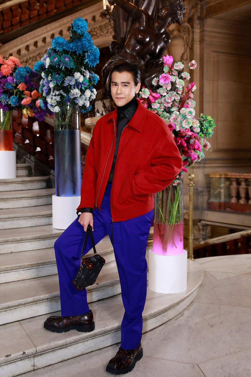 彭于晏以 红色的翻领外套再搭配上套头卫衣,紫色裤子,虽然紫色裤子看起来有点搞怪,但整体造型搭配起来很是吸睛;外套的部分,他选择现在相当流行的宽版剪裁翻领外套,还能结合多层次穿搭,可正式可休闲。整个人看起来精神又时尚。