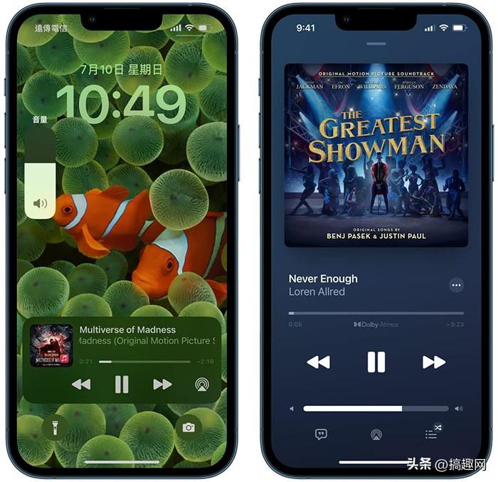 在播放音乐、看影片或解锁画面有播放背景音乐状态下,透过 iPhone 音量键控制都只能够调整「媒体音量」。