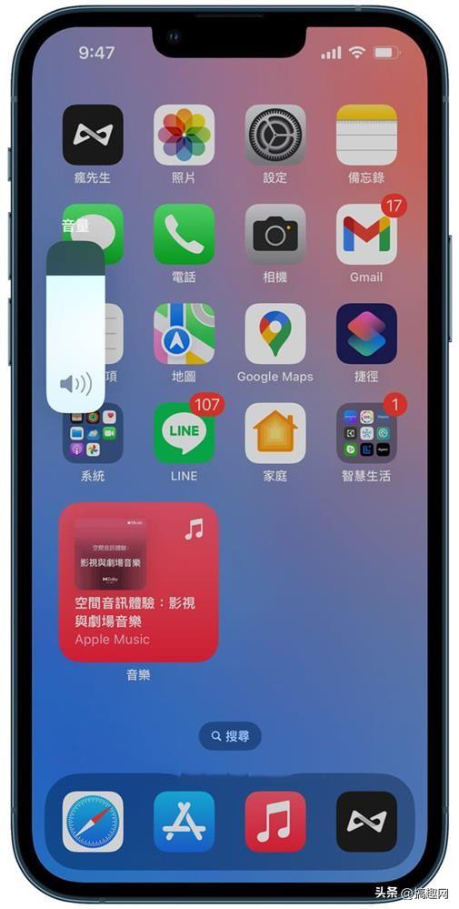 这么一来,在iOS主画面或APP开启下,按压侧边 iPhone 音量键就可以控制「铃声音量」,就能快速调整通知声、闹钟声音或来电铃声。
