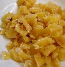 制作方法一般是将整块地瓜蒸熟去皮,然后压制、烘烤。制成之后可保存几年不坏,既可当零食,也可切成小块,拌上面粉、鸡蛋、香料,经油炸再沾上冰糖粉作为酒席名菜。所以,连城地瓜干实为馈赠亲朋之佳品。