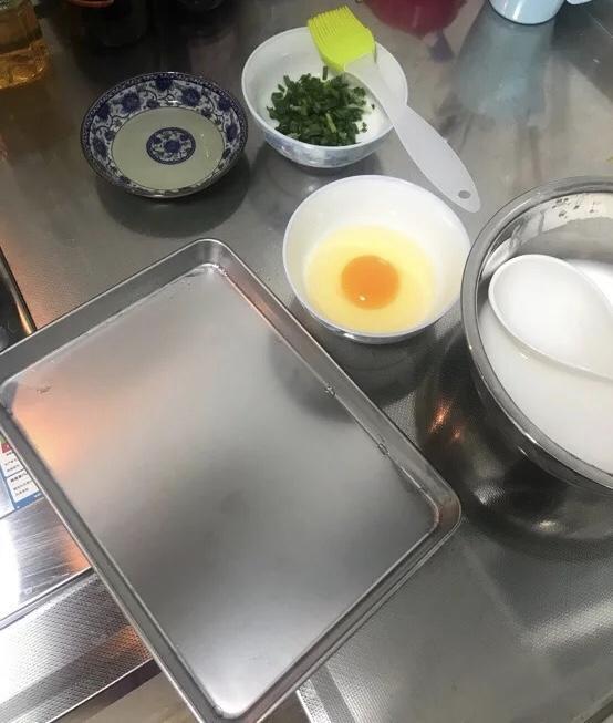 5、蒸盘要放平,盘子上刷的那层油,一定要薄薄的,这样蒸出来的肠粉才会厚薄均匀;盘子上不要刷太多油,那样粉浆就会到处流动,肠粉蒸出来就会不均匀。