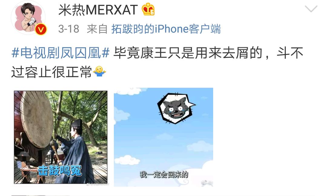 少言寡语的容止直接让他去找康王就可以,然而花错却一脸蒙圈,原来饰演康王拓跋昀的米热曾经发过一条微博,认为康王只是用来去屑的,斗不过容止很正常。哈哈,没想到康王不仅剧中蠢萌,连戏外也是挺逗逼的。