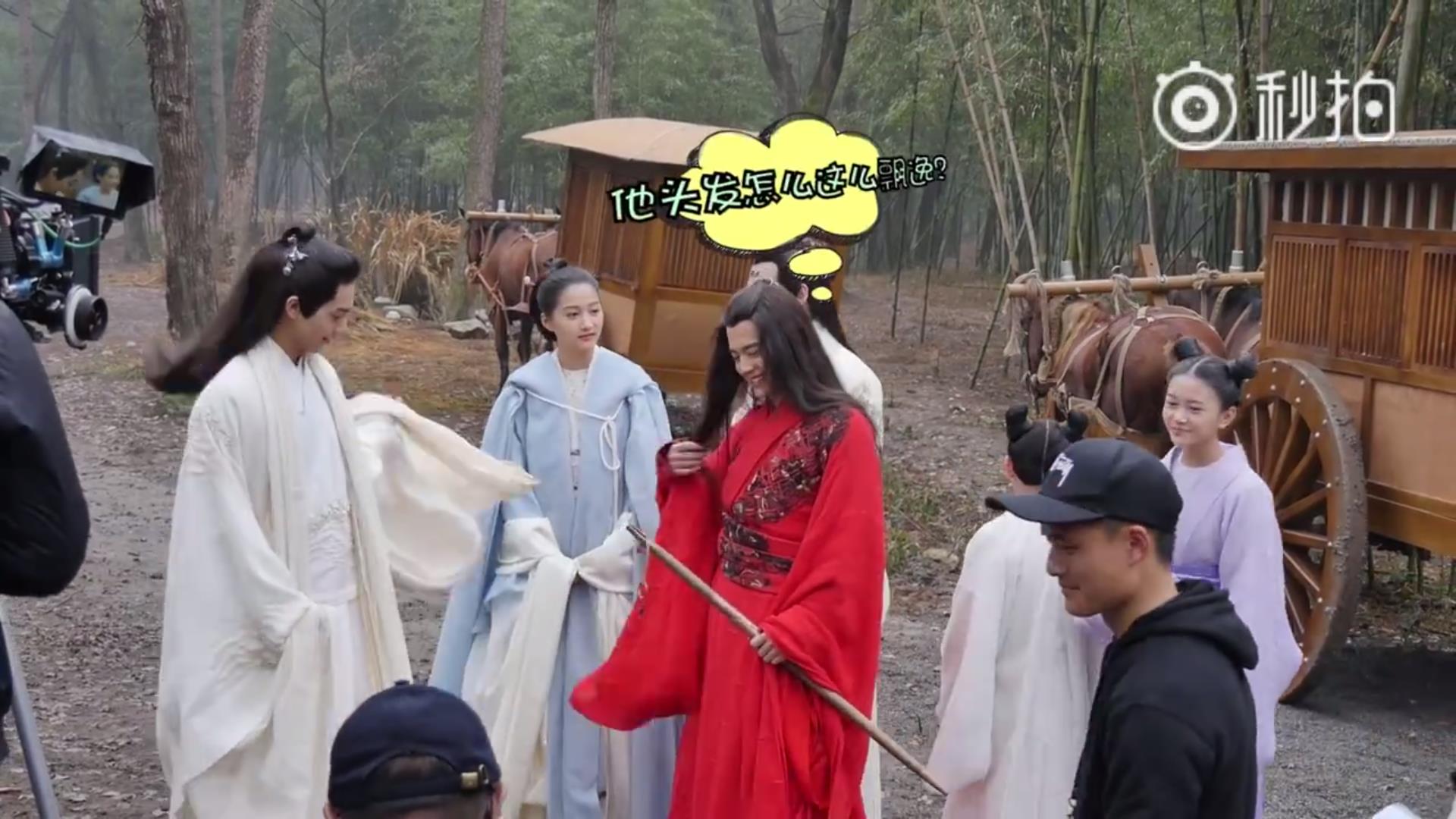 就在拍这场戏时,容止的头发突然被风吹着向前摇了摇,然而其实在拍这个花絮的时候,其实花错的长发也要向前飘一下的,可惜没有飘起来,为此花错还吃醋容止的头发怎么这么飘逸,为此还跟他讨要秘方。