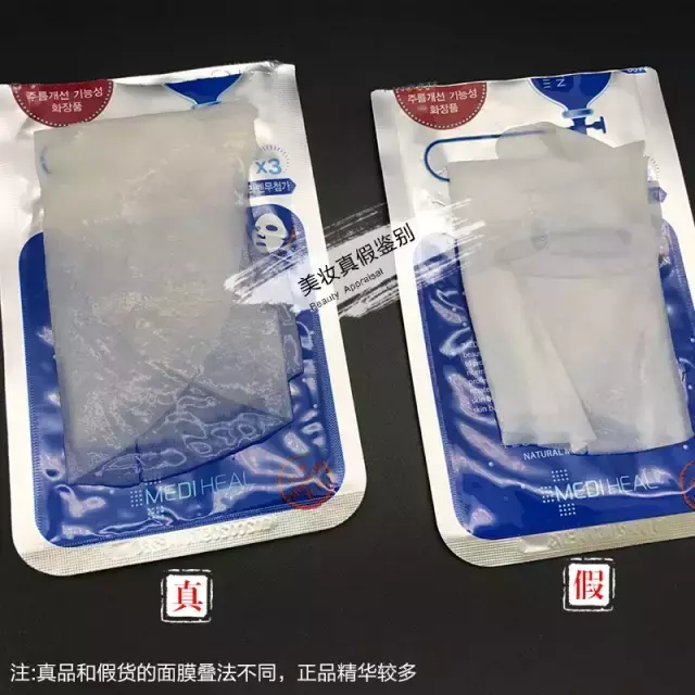 正品是正规的叠法,整个浸透在精华里。假货叠法随意,精华偏少。