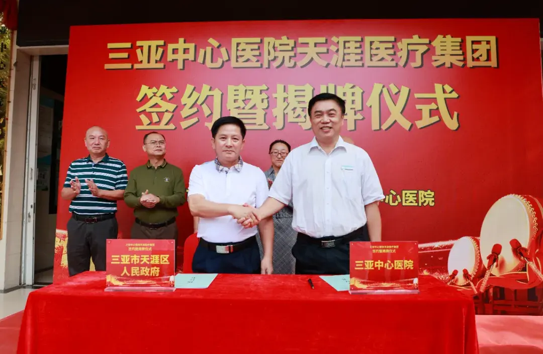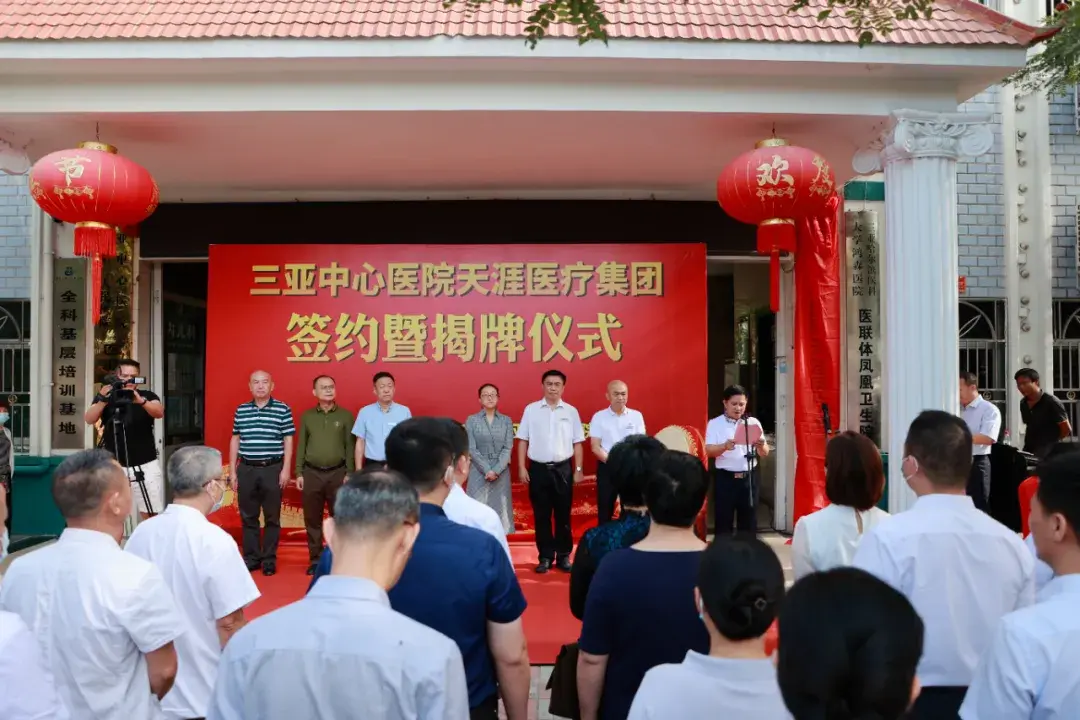 三亚市卫生健康委员会副主任吴晓冬,三亚中心医院党委书记、院长陈仲,副院长田作春、黎宗保,市场监督管理局天涯分局副局长王辉颖,天涯区委组织部、区委编办、区发改委、区财政局、区人社局、区医保局主要领导,三亚中心医院部分中层干部,凤凰卫生院、马岭卫生院、高峰医院、高峰卫生院主要负责人等50余人参加签约揭牌仪式。