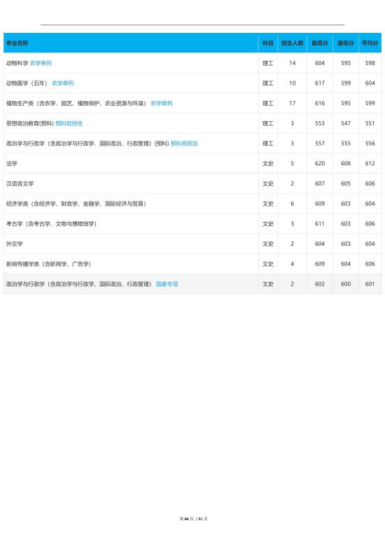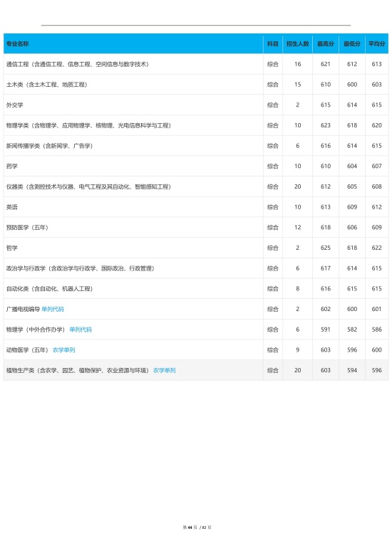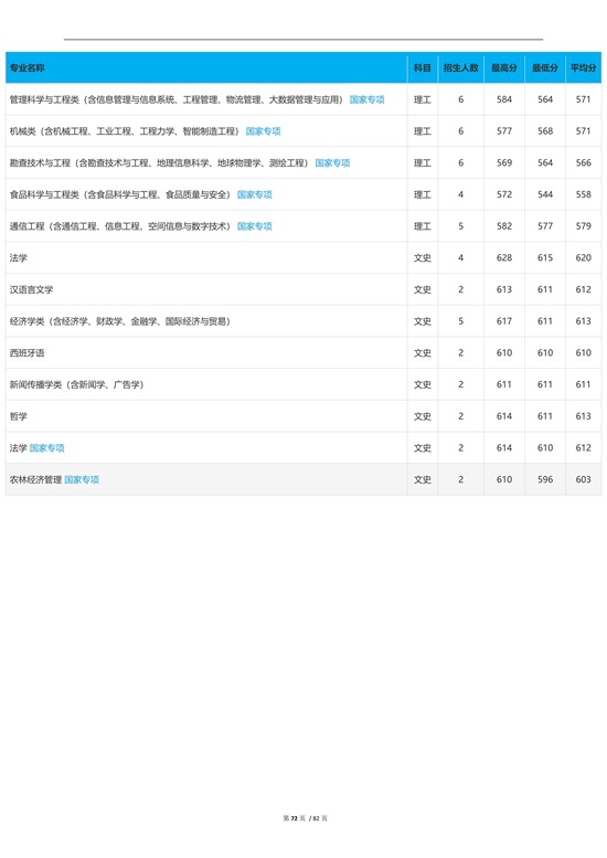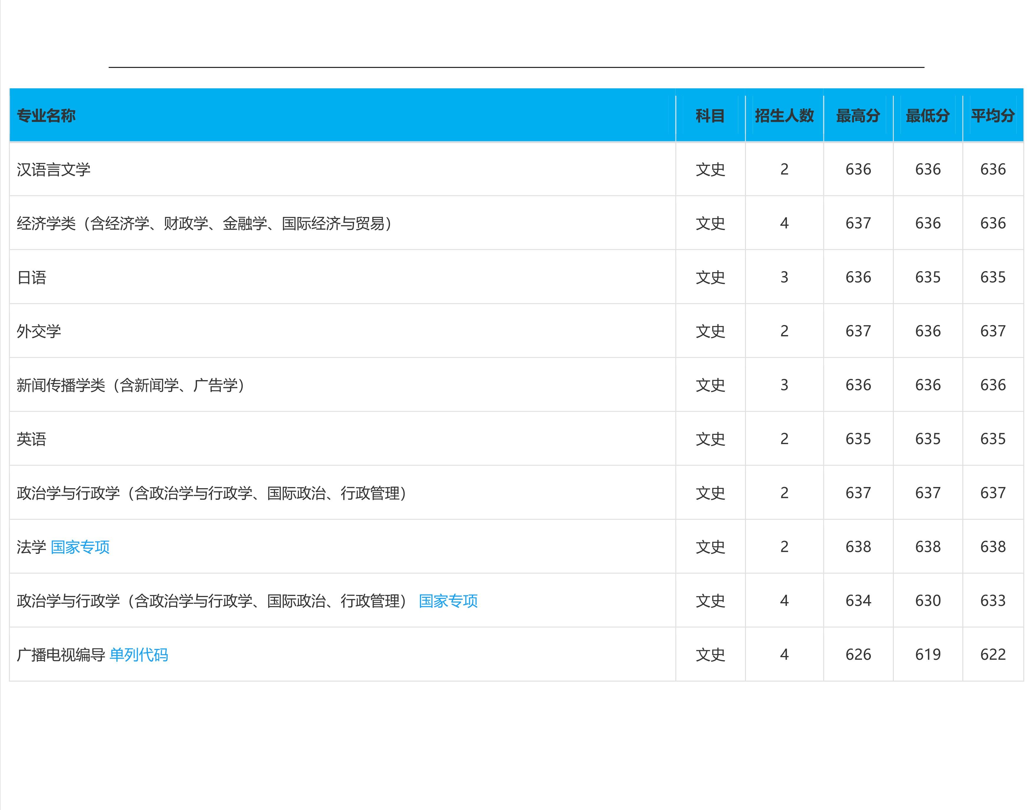 法学专业录取分数线最高,录取最低分为637分。广播电视编导( 单列代码)专业录取分数线最低,录取最低分为600分。