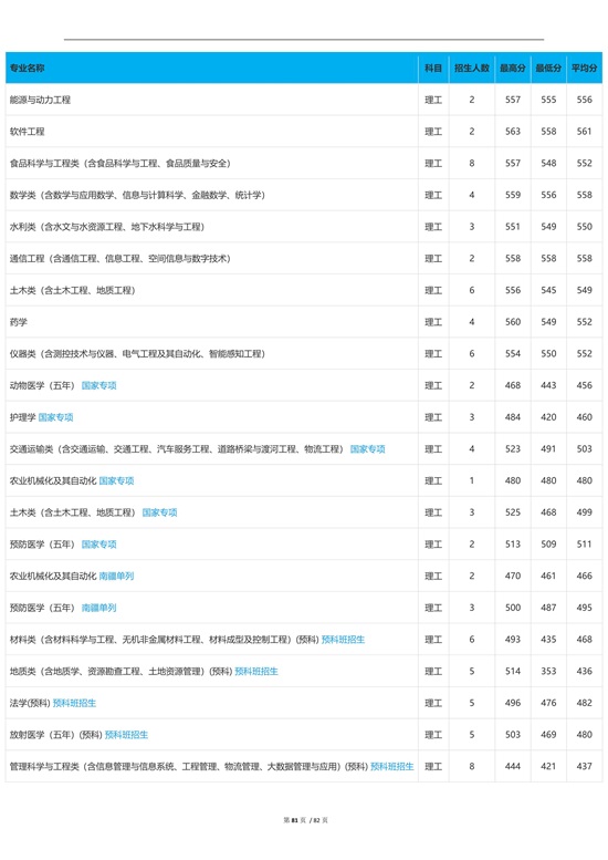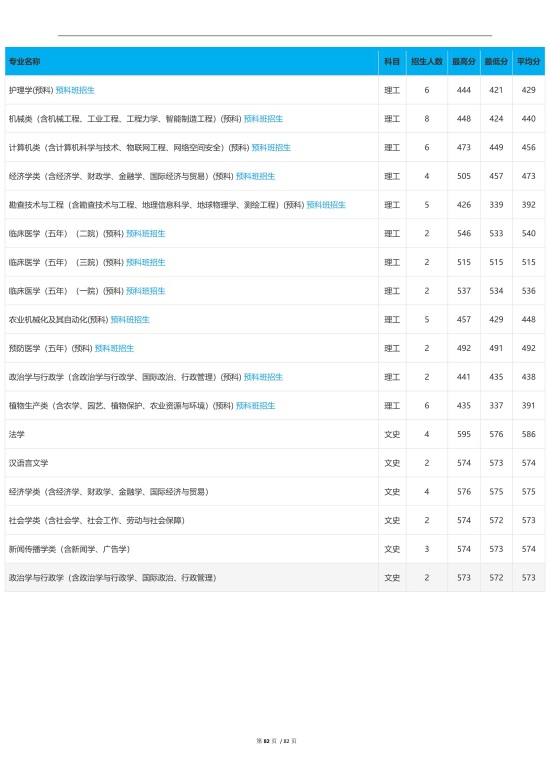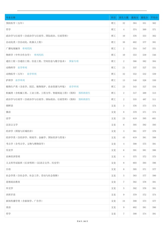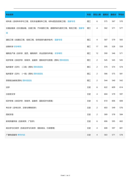 法学专业录取分数线最高,录取最低分为595分。广播电视编导 (单列代码)专业录取分数线最低,录取最低分为556分。