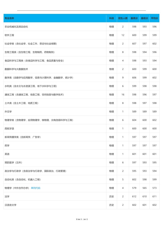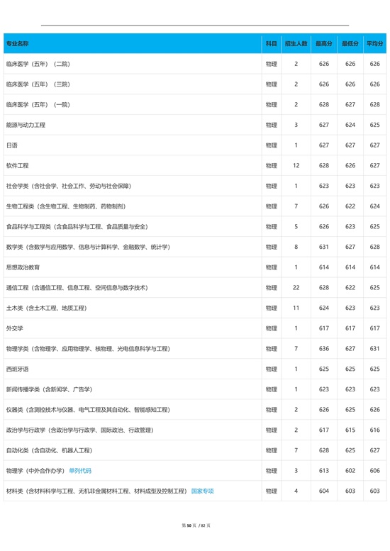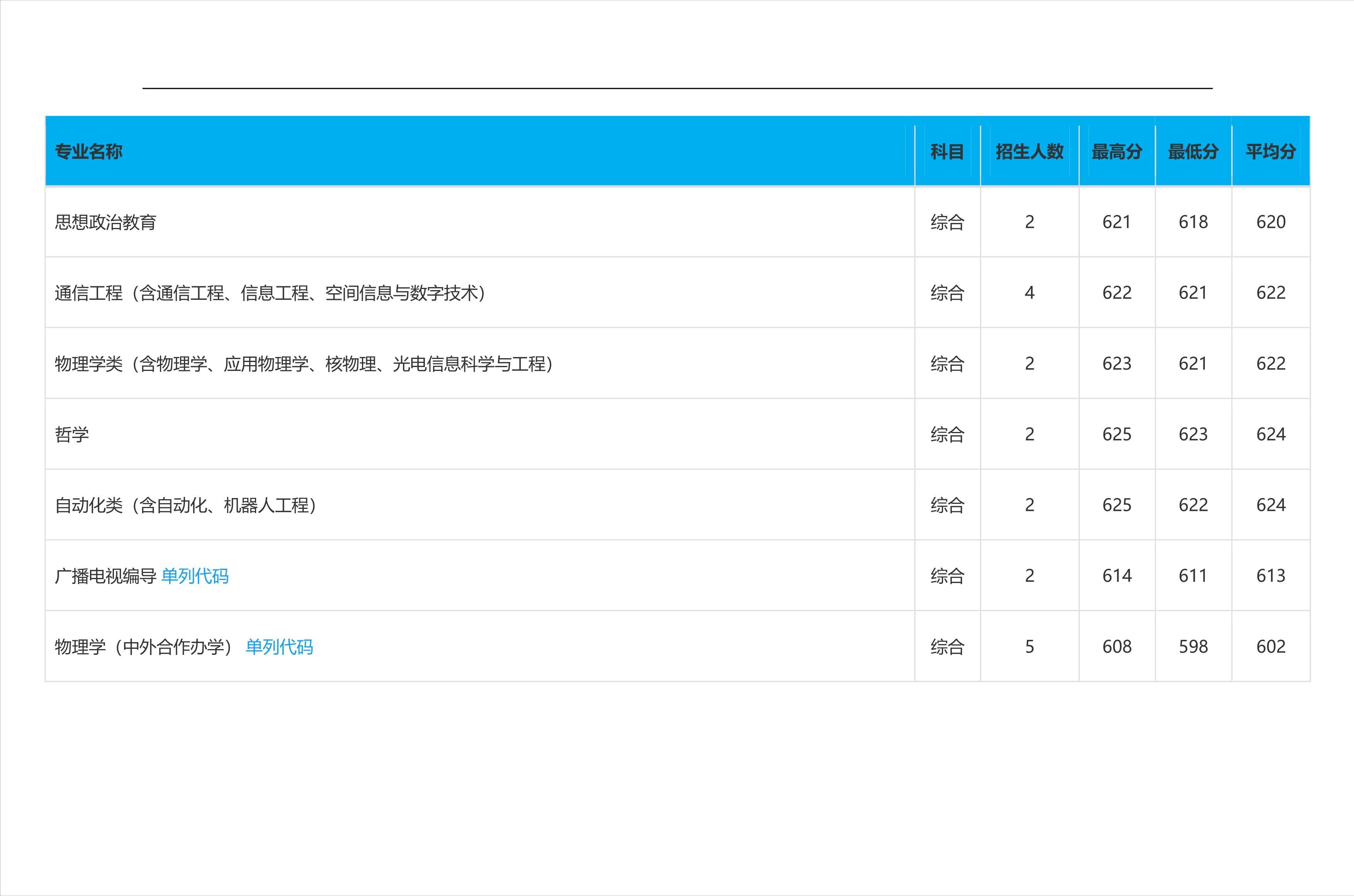 法学专业录取分数线最高,录取最低分为630分。物理学(中外合作办学)(单列代码) 专业录取分数线最低,录取最低分为598分。