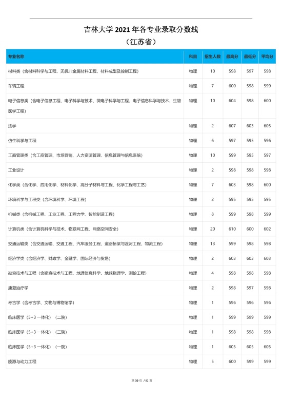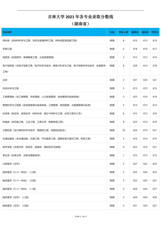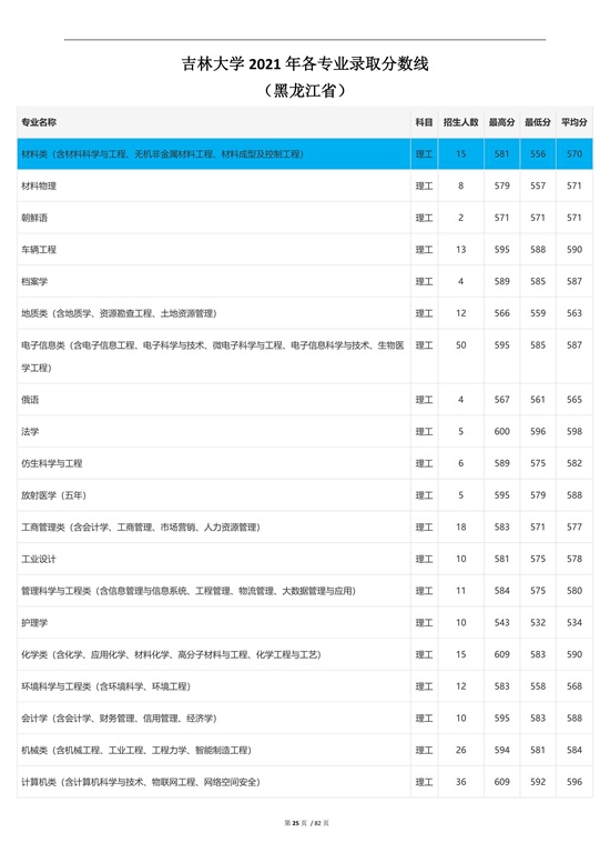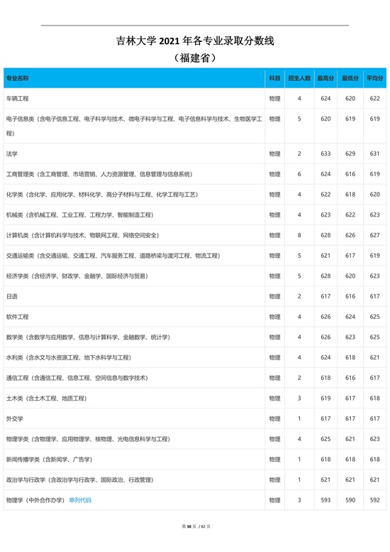 2022高考:吉林大学2021年在各省市本科招生的专业录取分数线