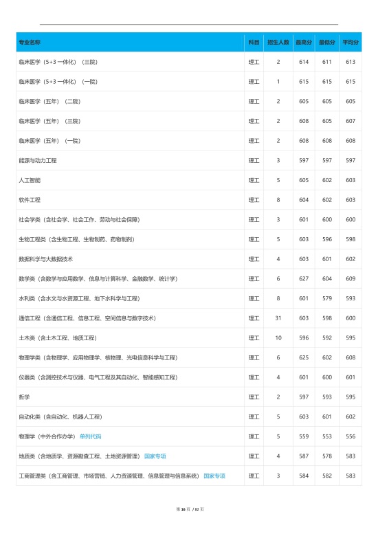 临床医学(5+3一体化)(二院)专业的录取分数线最高,录取最低分为630分。环境科学与工程类(含环境科学、环境工程)专业的录取分数线最低,录取最低分为607分。