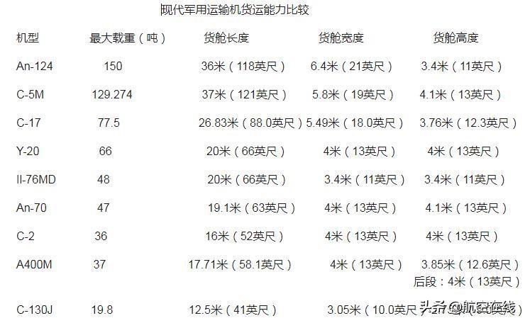 现代军用运输机货运能力比较