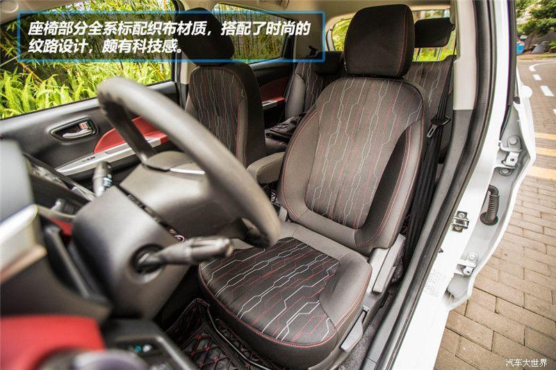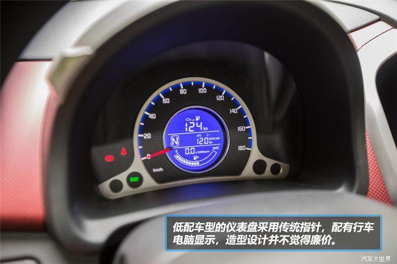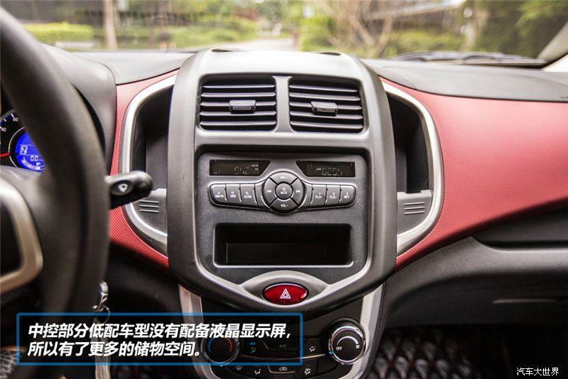我们试驾的车型是奔奔EV260 标准型,是三款车型中最低配的版本。中控部分采用红黑双色搭配,内饰用料大部分为硬塑料,作为追求经济实惠、价格亲民的微型车来说也能理解。