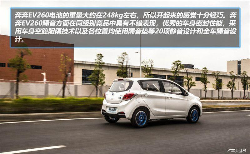 奔奔EV260电池的重量大约在248kg左右,所以开起来的感觉十分轻巧。奔奔EV260隔音方面在同级别竞品中具有不错表现,优秀的车身密封性能,采用车身空腔阻隔技术以及各位置均使用隔音垫等20项静音设计和全车隔音设计。