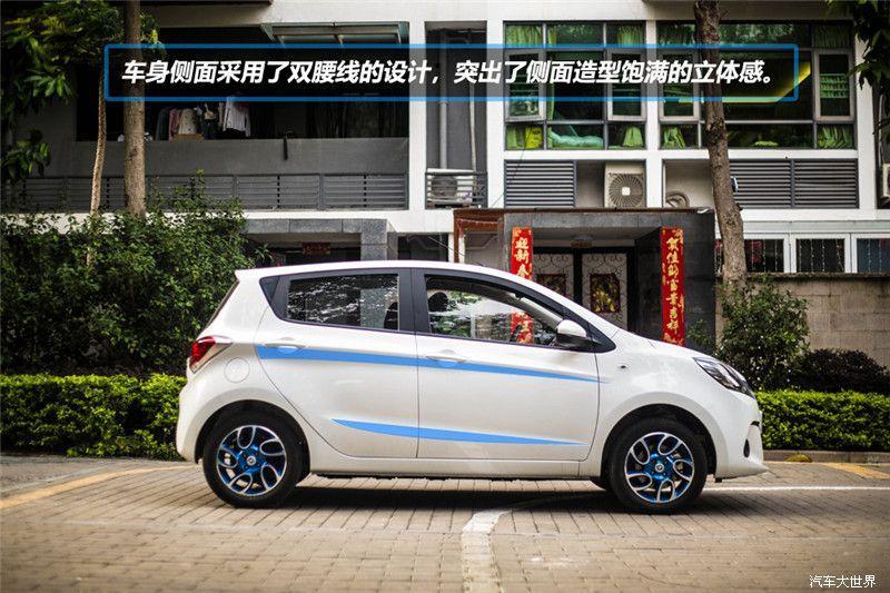 奔奔的外观的设计始终有着自己独特的风格,具有很高的识别度。奔奔EV260的车身尺寸为3730*1650*1530mm,轴距为2410mm,定位为微型车。车身侧面采用了双腰线的设计,突出了侧面造型饱满的立体感。