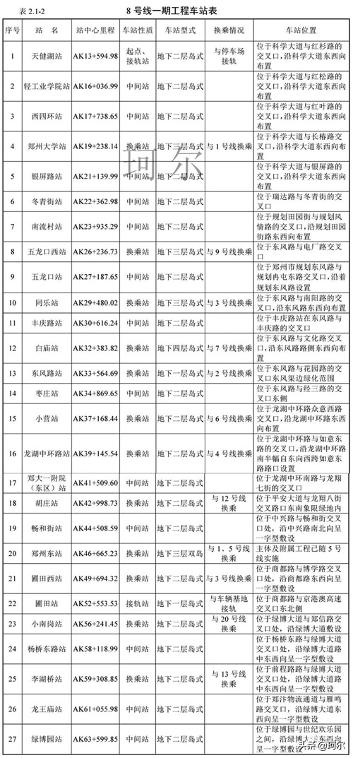 郑州轨道8号线一期工程起于高新区天健湖站,终至绿博园站,全长50.63km,全为地下线设车站27座,全为地下站;计划明年全面开工,2024年拟通车运营,总工期为5年.....