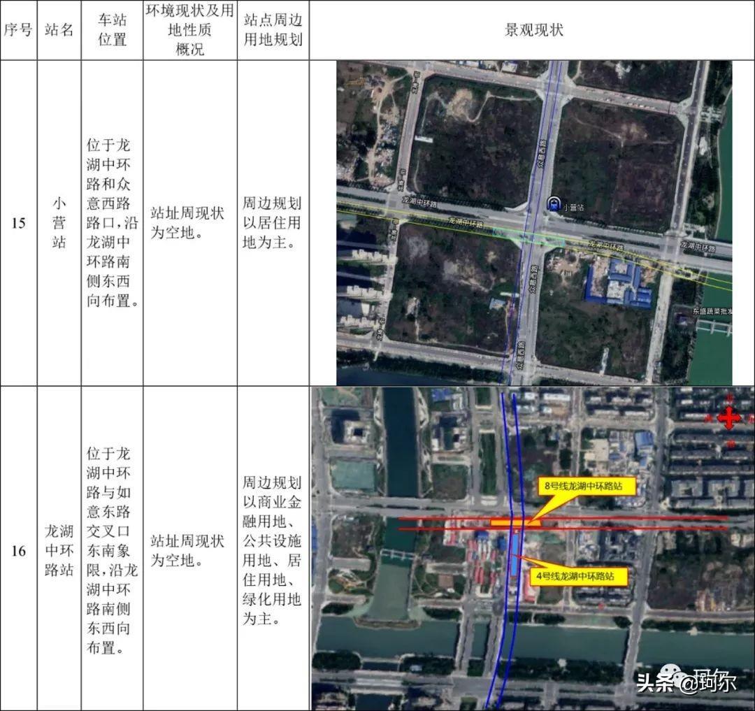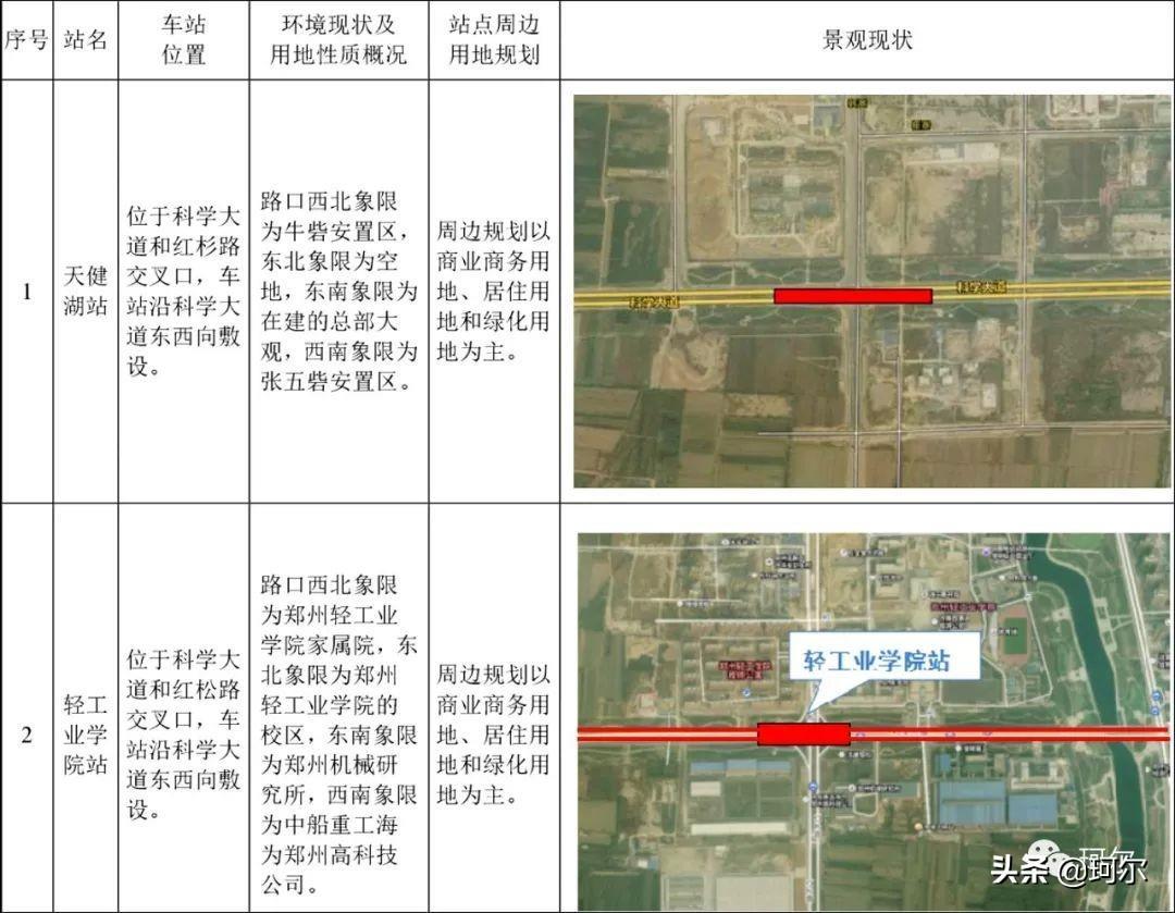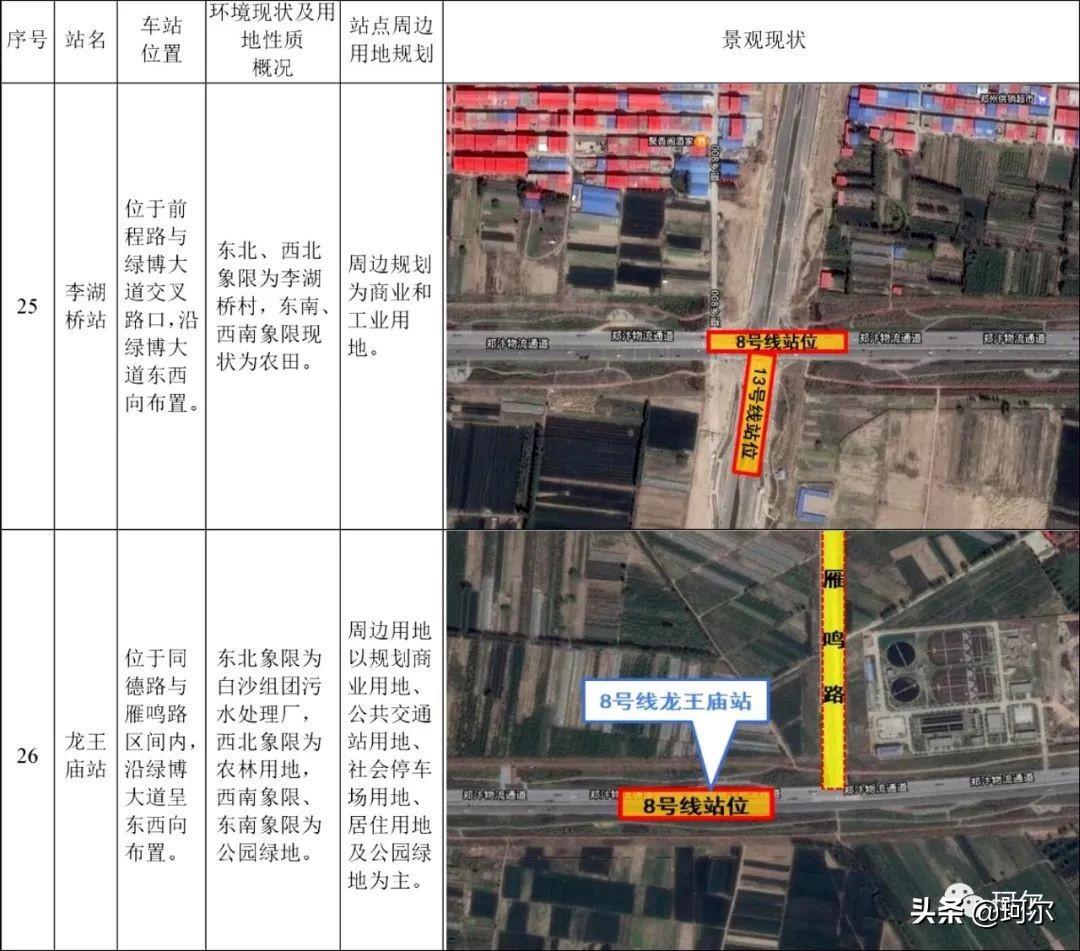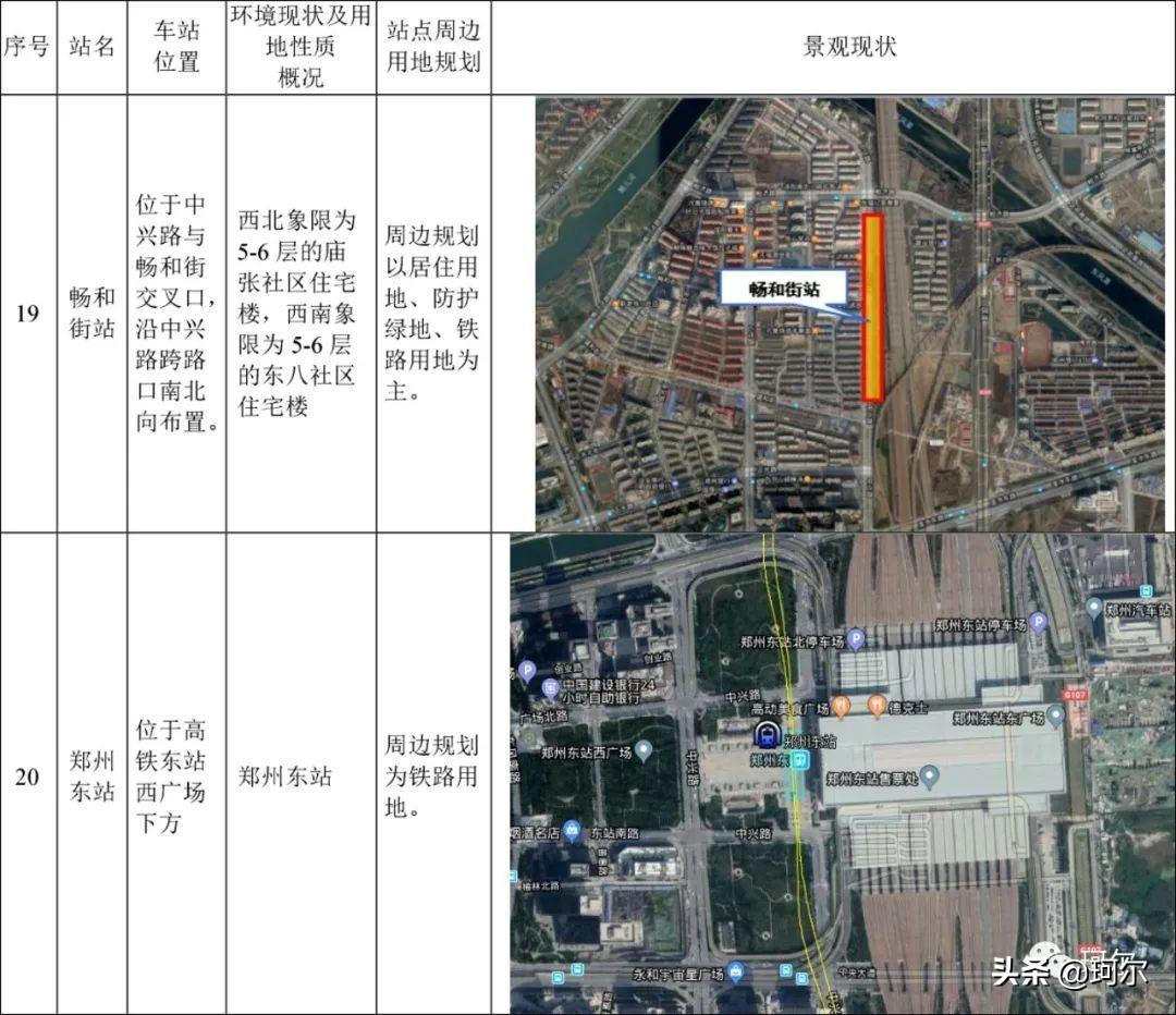 而每个站点大体布局和周边情况如何呢?来看工程沿线车站所在地用地、景观现状及规划概况,具体如下图:
