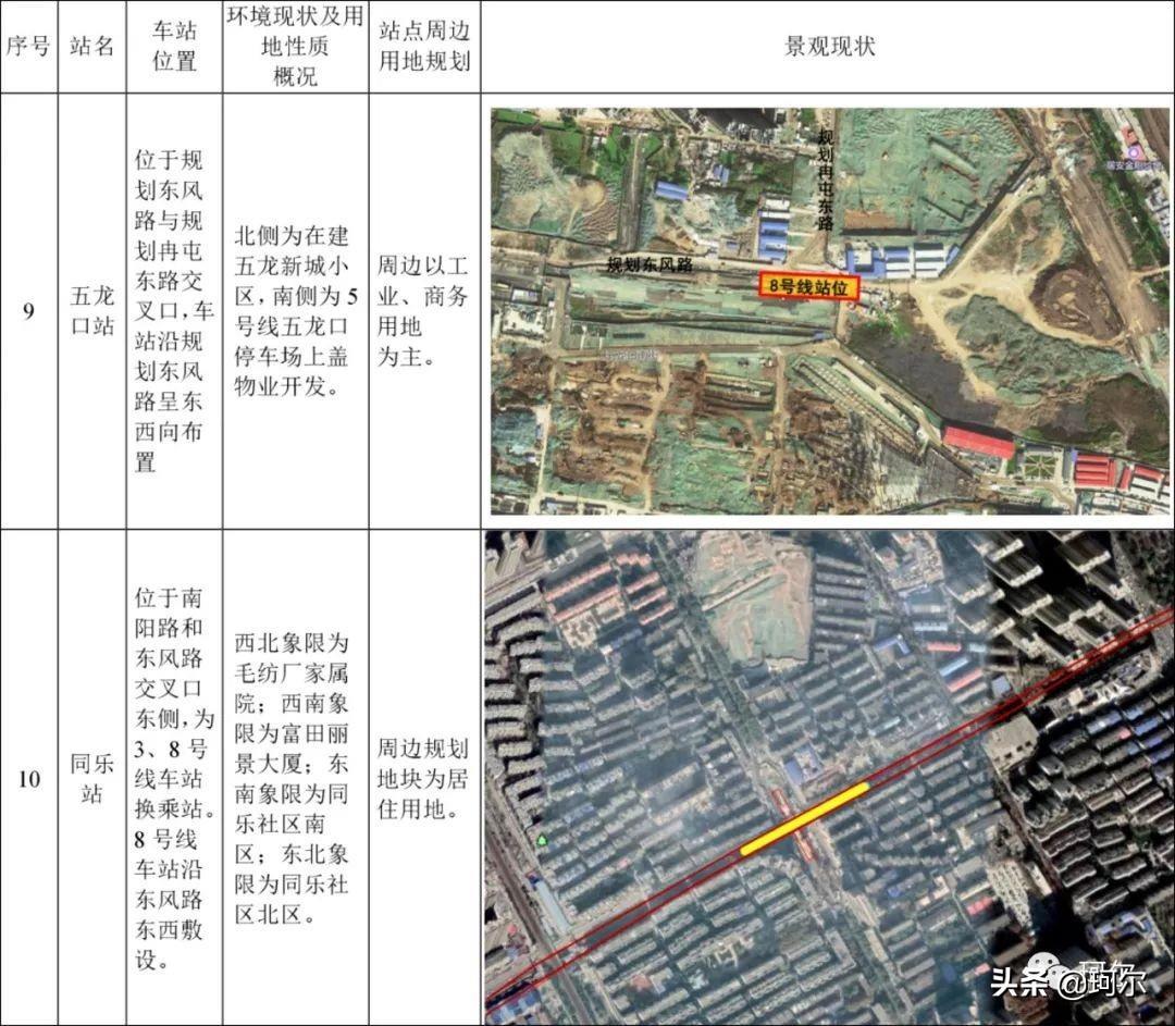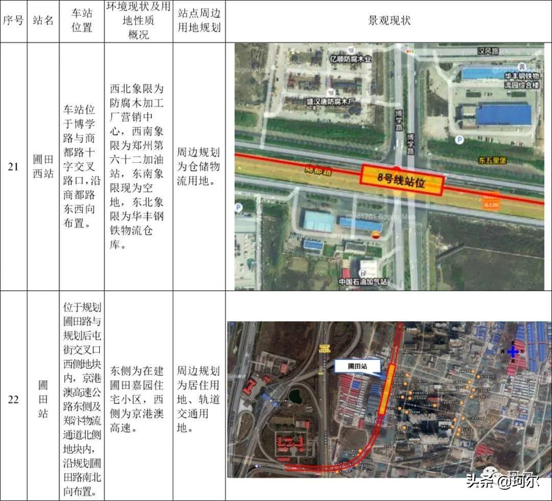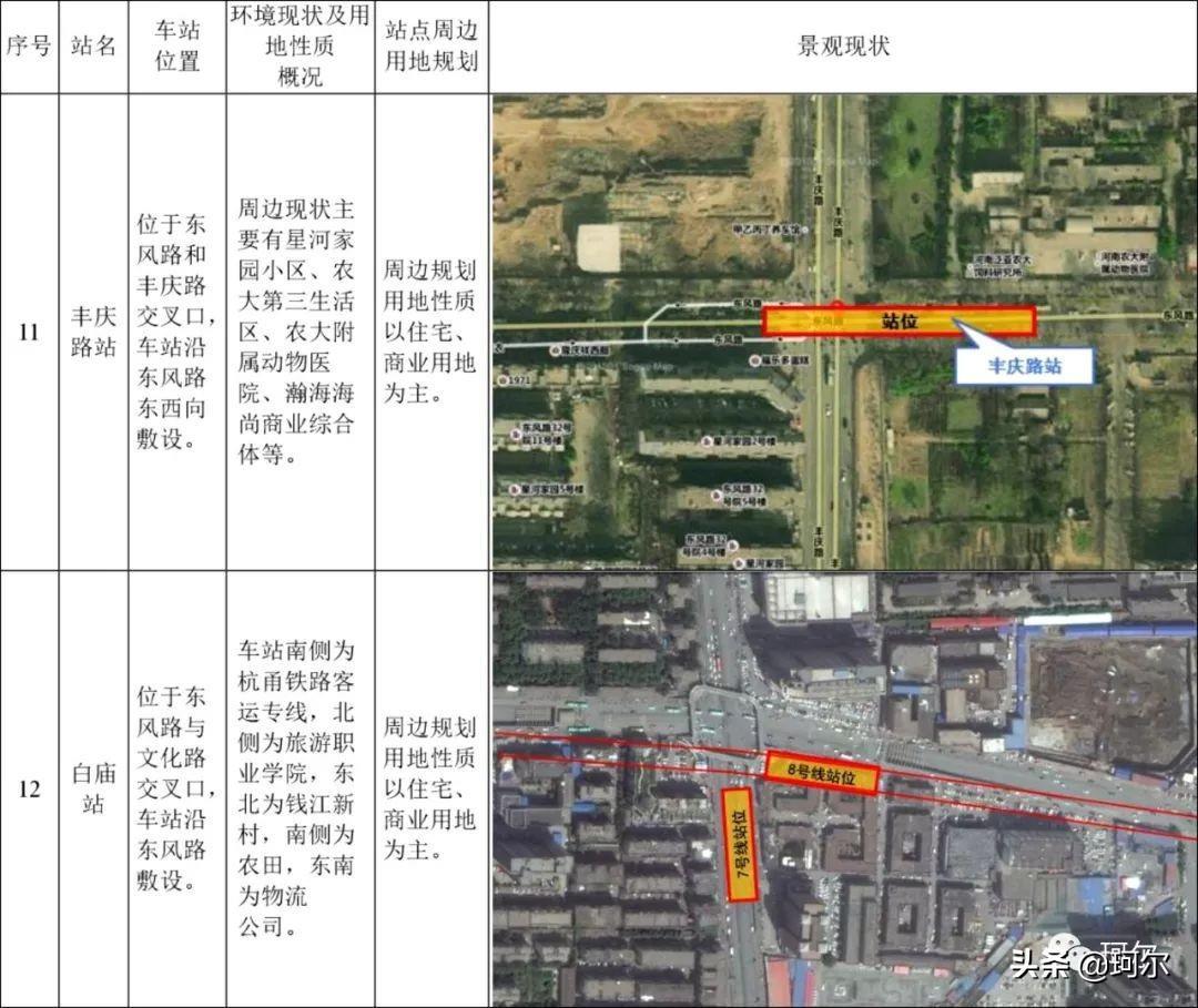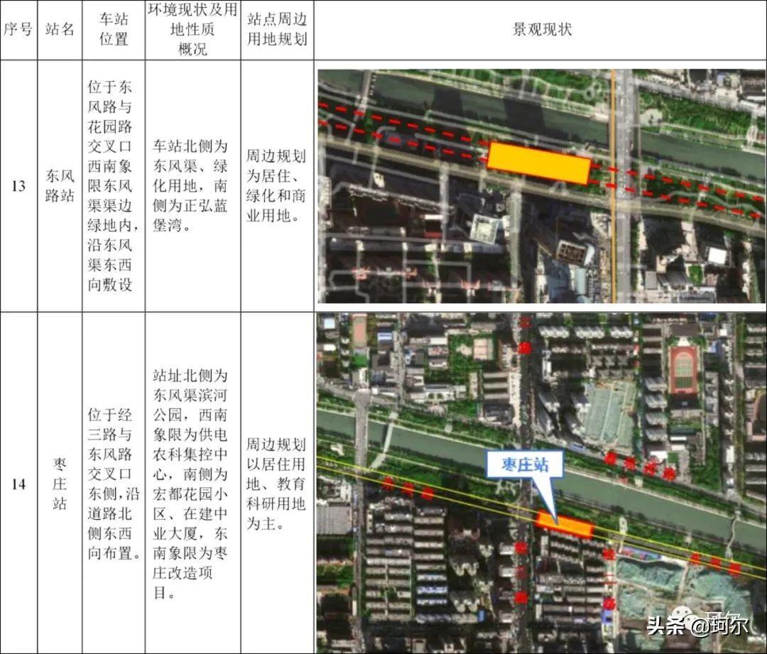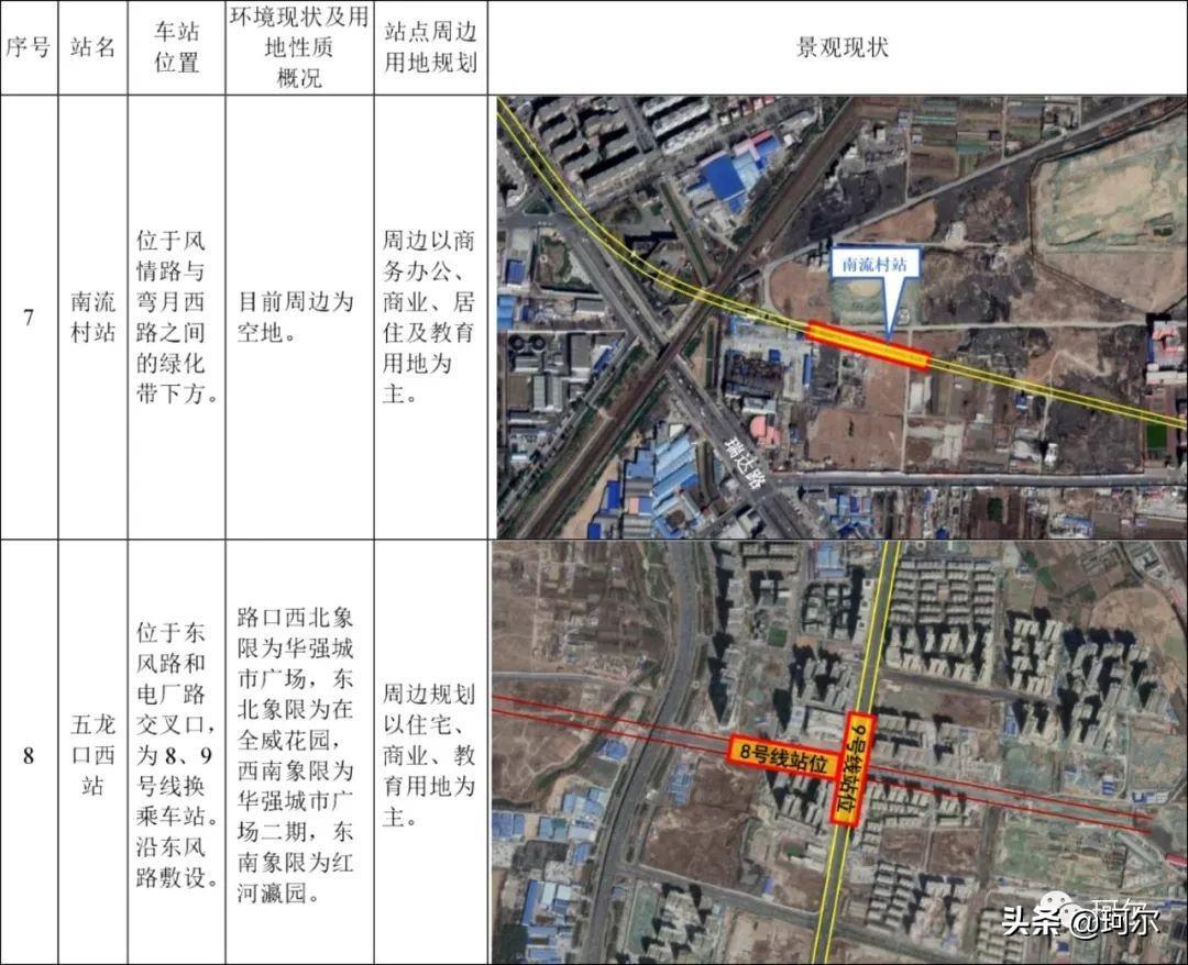而每个站点大体布局和周边情况如何呢?来看工程沿线车站所在地用地、景观现状及规划概况,具体如下图: