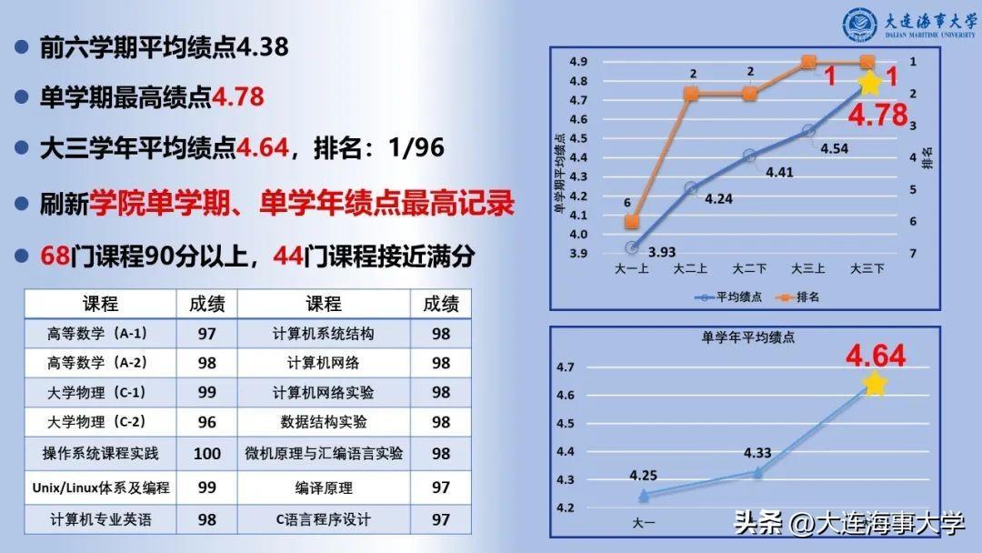 截至目前,他前六学期平均绩点4.38