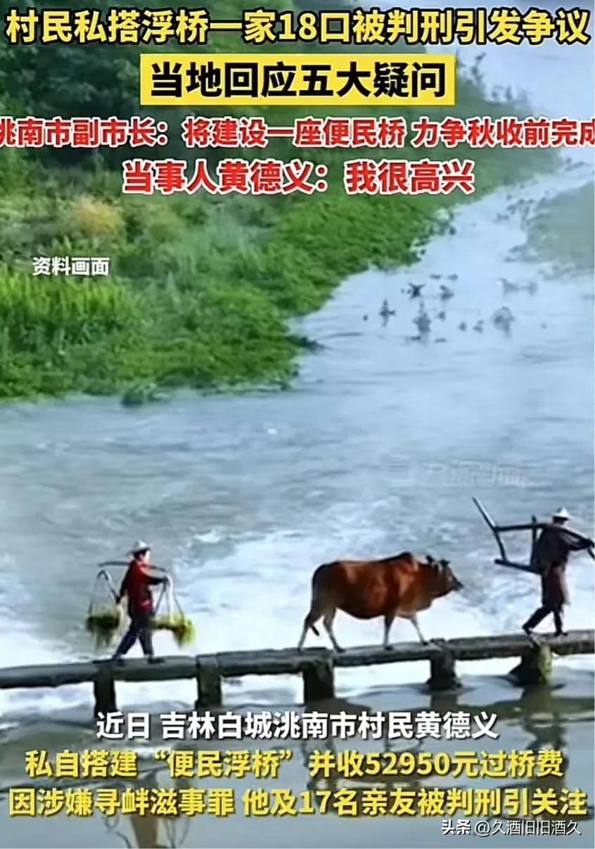 近日,吉林省白城洮南市瓦房镇振林村村民私自建桥被判刑的消息引发关注。村民黄德义组织家人在洮儿河上搭建浮桥,收费4年。2018年,当地水利局以非法建桥为由处罚并强制黄德义拆除浮桥。2019年,黄德义被洮南市人民法院一审判处有期徒刑两年,缓刑两年,其他17名亲属也分别被判刑。2023年7月8日,此案迎来新进展。吉林省白城市中级人民法院发布通报称,黄德义因对此前判决不服提出申诉,今年6月29日,该院依法定程序对该案立案,目前正在审查中。