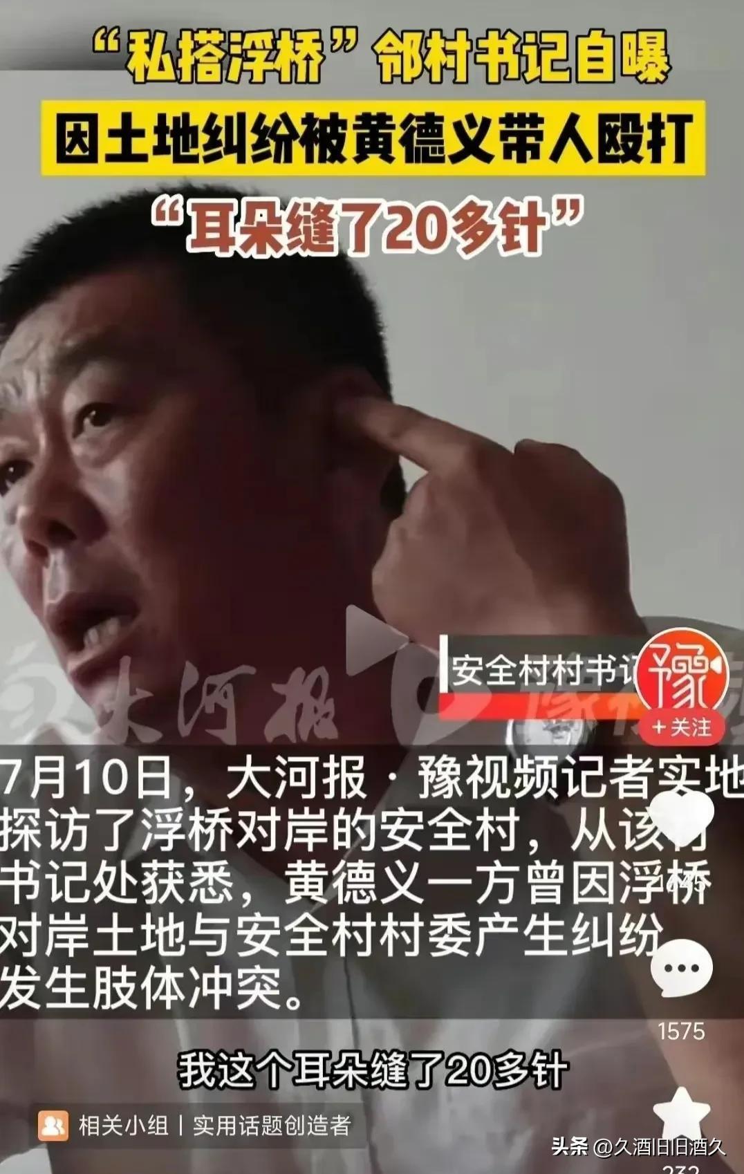 2017年河道两岸开荒种地,黄德义与河对岸的洮北区平安镇安全村发生过冲突。安全村党支部书记谷天福左耳受伤,他的观点也是不认同修私桥的行为。