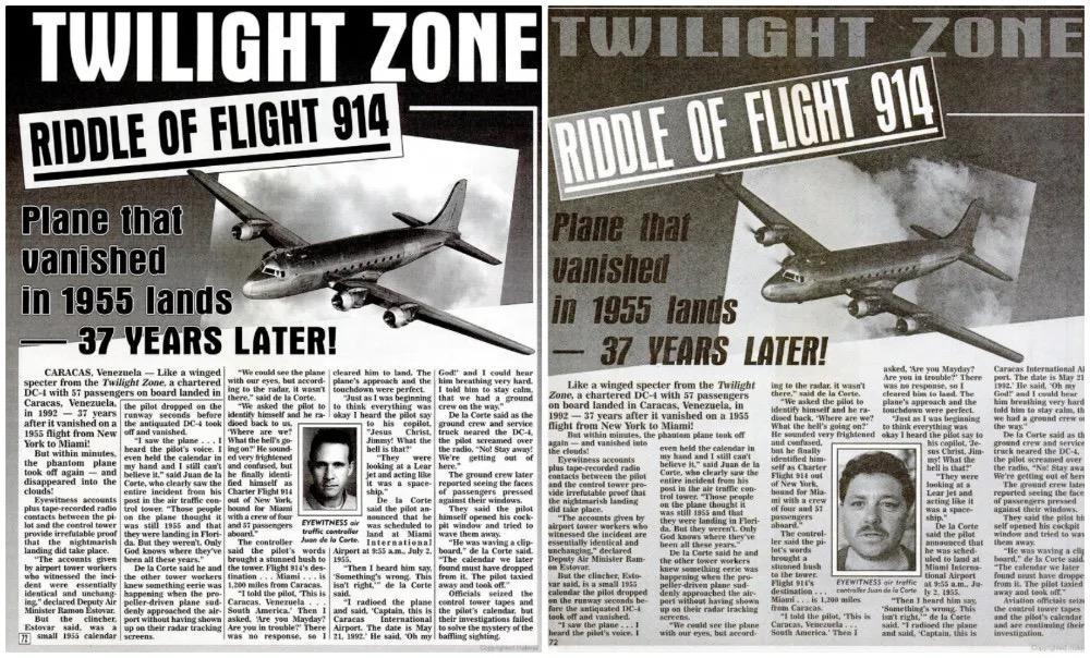 除此之外,大川还注意到,最早刊登914号航班事件的《世界新闻周刊》,早在1985年就曾报道过一起同样的航班穿越事件。