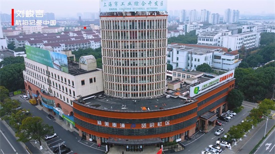 北部的工业区与这里就只有一街之隔。十字路口侧一栋略显年代感的楼上,上海市工业综合开发区的大牌子非常地醒目。