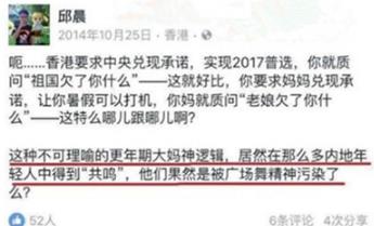 而现在有网友发出越来越多的猛料,原来邱成光明正大的支持当年的占中行动。网友扒出她在2012年到2014年的一些账号的内容,话里话外对于这些行动非常的支持。