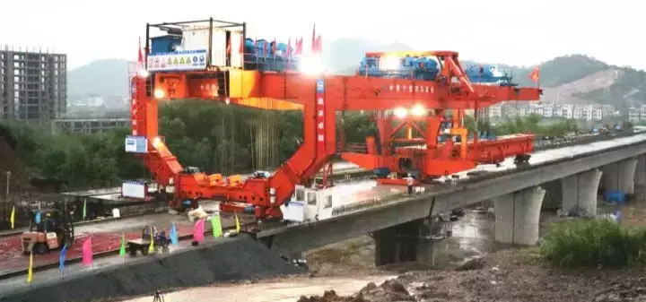4月22日,在中铁四局赣深铁路5标段,首片箱梁(连续梁)架设成功。黄世军 摄