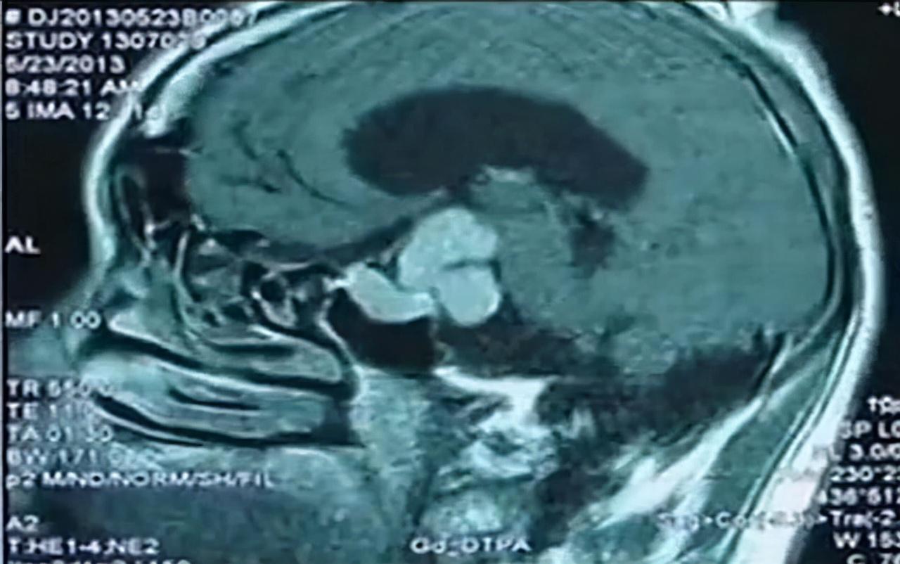原来,在赵亮的大脑中有一个特别巨大的脑瘤,这个脑瘤已经侵占了血管和神经的地盘,这才导致了赵亮的头痛、头晕、眼睛间歇性失明。