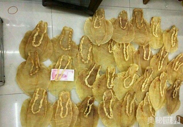据老渔民介绍说,金钱鮸在解放前,温州沿海各地常有捕捞,视为上等大补品,尤其是鱼膘(俗称“鱼胶”)甚为珍贵,素有“贵如黄金”之说。黄唇鱼虽体似黄鱼,但鱼鳔形状特殊,呈圆筒型,前端宽平,由两侧各伸出一把细长,约与鳔等长的侧管(俗称胡须)向后深人体壁肌肉层内。