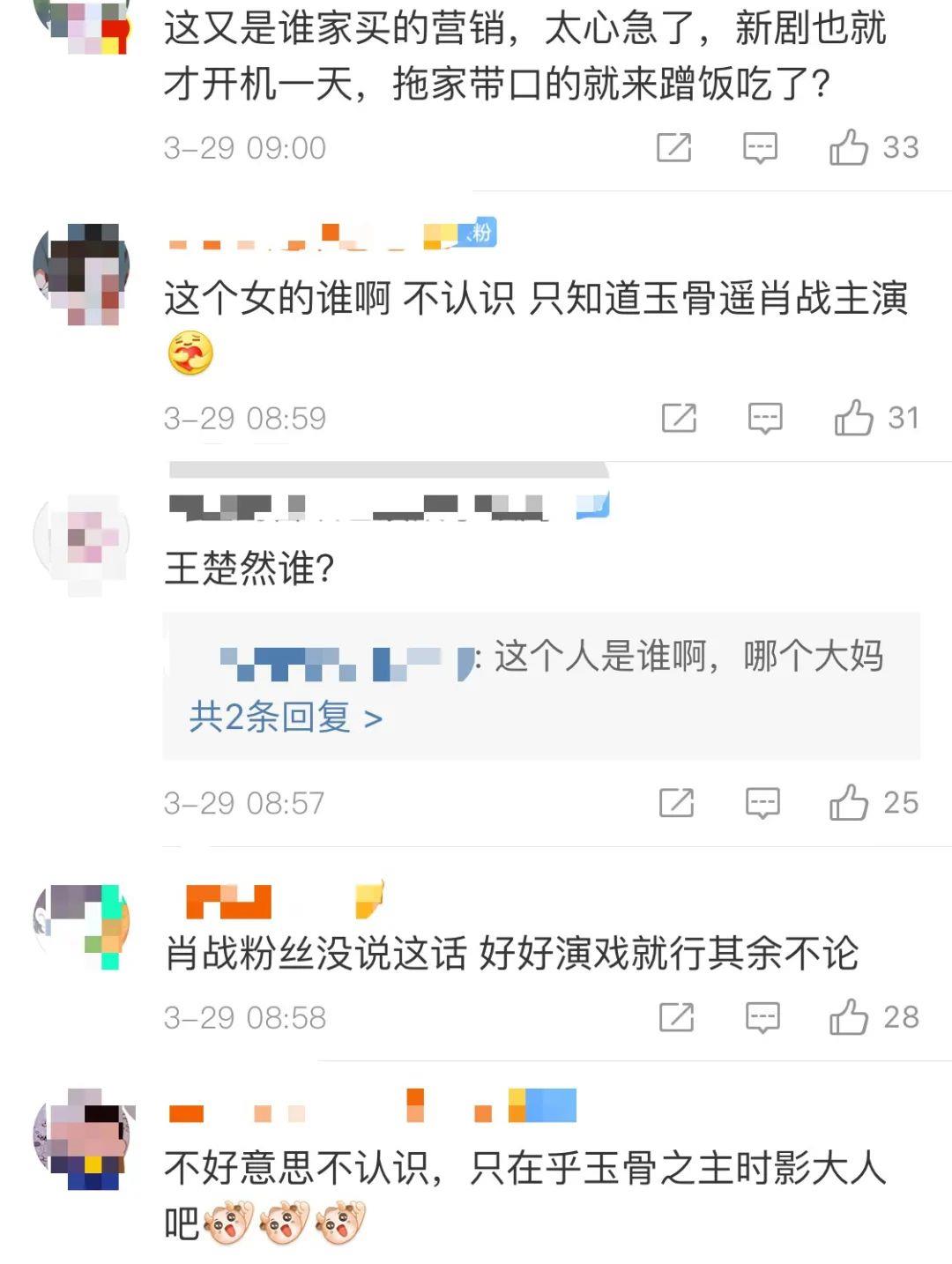 肖战和任敏的新剧《玉骨遥》官宣,结果剧中的女二王楚然引起了肖战粉丝的注意,因为王楚然是王一博的粉丝,还曾在一档节目中公开为王一博打call,肖战的粉丝纷纷手撕王楚然,表示不欢迎她和肖战合作。王楚然的粉丝也撕了回去,这件事情引起的争议还不小,王楚然本人也被撕上了热搜。不过肖战粉丝在事情闹大后却改了说辞,表示是王楚然的粉丝先冒犯了她们。
