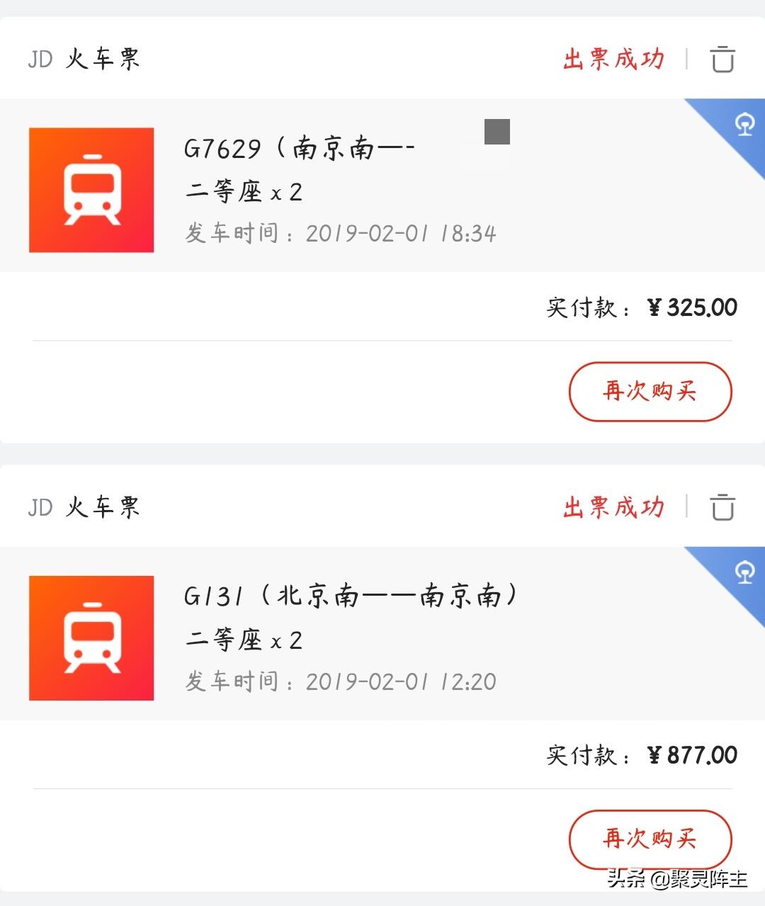 下图第一张就是以南京南为中转站专车,顺利回家了。第二站则是多花几十块钱买到了北京-江山(起始站到终点站,一般票多),也成功抢到了票。