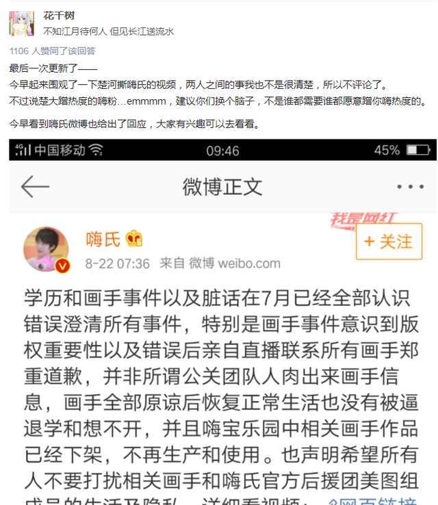 就这的争执,一瞬间引起了一场撕逼大战,不仅是楚河与嗨氏之间的争执,更是发展到了两个主播粉丝之间的大战;