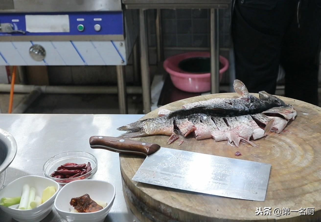 首先刮去鱼鳞,择洗干净,用刀从中间切开,去掉鱼的脊骨,然后在鱼身两侧,斩成两厘米宽的段,放入盆中备用
