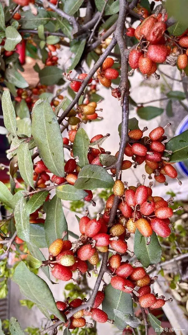 胡秃子边开花边结果,花期长果期长,红彤彤的果实挂满了枝头、挂满树,您家的客厅里摆上一盆,即好看又好吃,一举两得、倍有面子