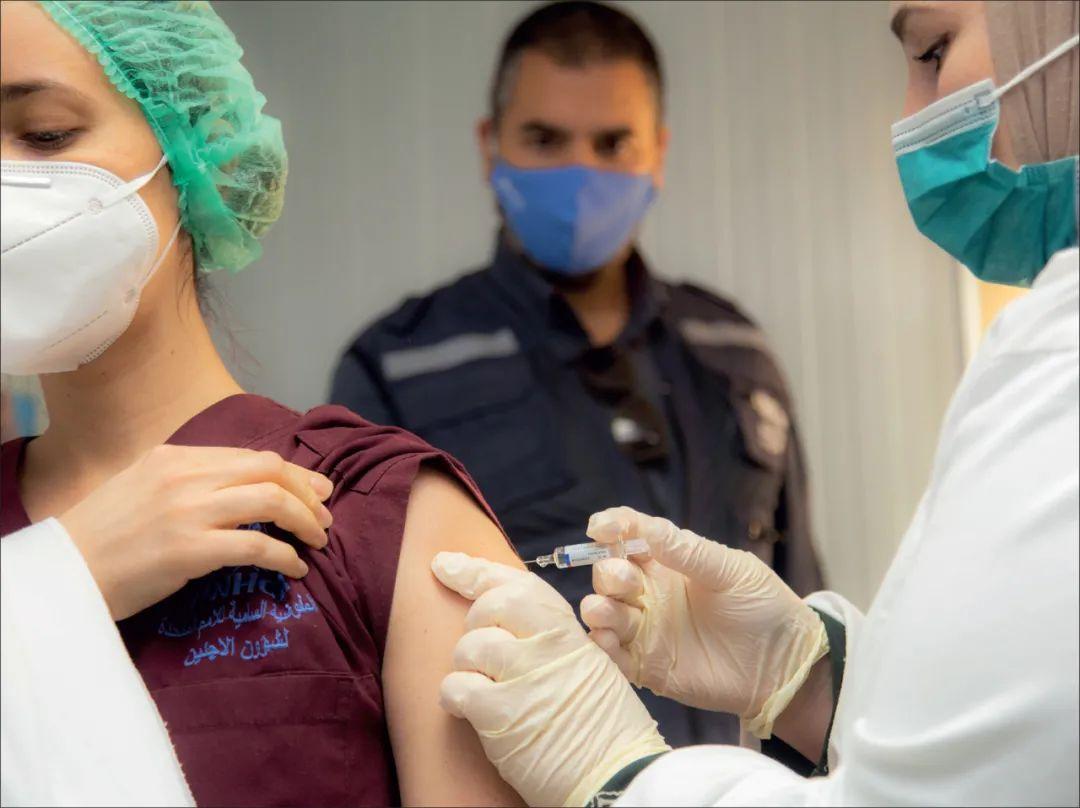 大量来自叙利亚和其他国家(如伊拉克和也门)的难民流离失所前往约旦。在新冠大流行期间,约旦政府采取了包容性的做法,将难民和移民纳入约旦的COVID-19国家部署和疫苗接种计划。照片拍摄于2021年1月,难民们在公共卫生诊所接种了第一剂新冠疫苗。疫苗接种是免费的,并且不考虑难民和移民的居住地和法律地位。各国需要在全球范围内做出协调一致的努力,以确保包括难民和移民在内的所有人群都能公平地获得新冠疫苗。