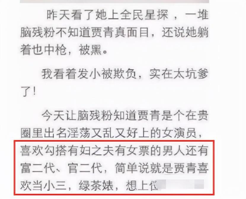 一句“贵圈女演员真面目”顺带还送上了一堆贾青的艳照,让贾青混乱的私生活直接被公开处刑。
