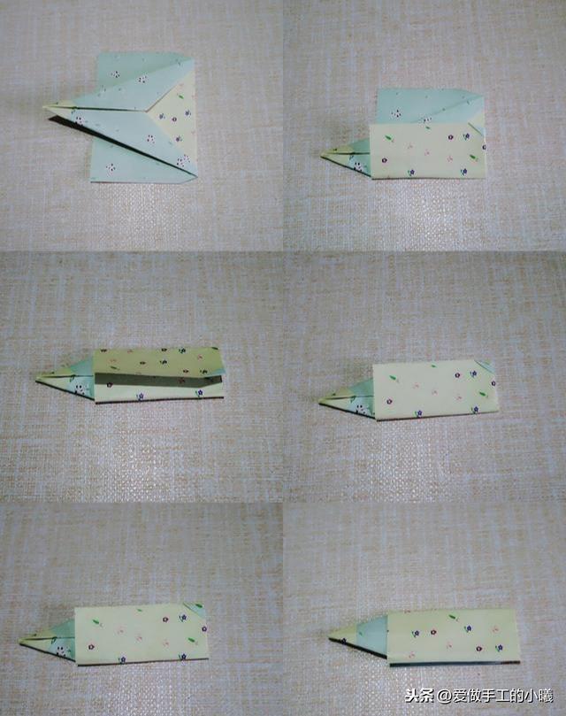 翻过来,多出的角塞进后面的缝里,左右两边向中间折,塞进中间的缝里。