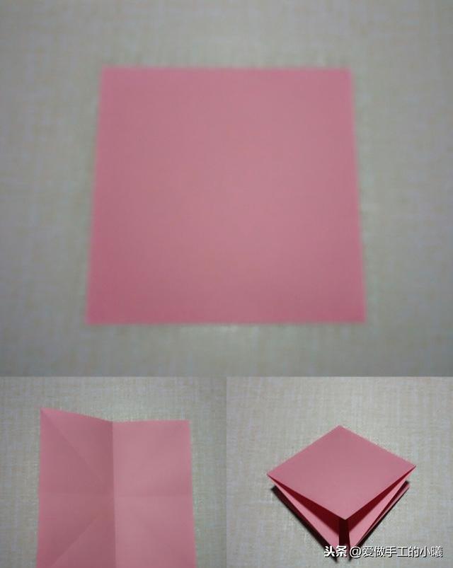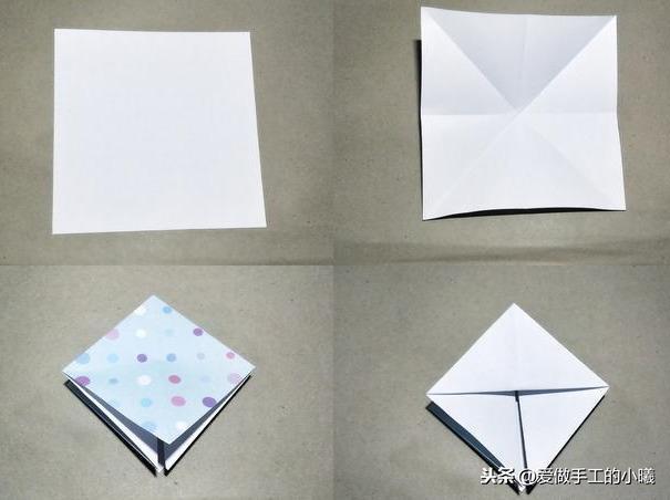 首先沿着对角线对折。
